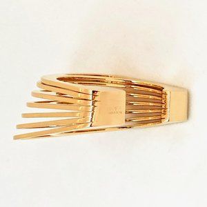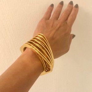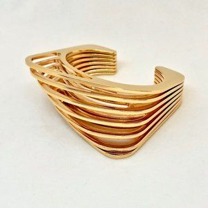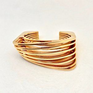 Try and find another one, Highly collectible, OFFICIALLY archived. From the Classic Collection. Inspired by the Louvre and handcrafted in Italy. Approx. 2.30" inner diameter; 1.30" at widest point. 24k gold plated brass. Segmented, stacked layers with cutouts. Weighty. its intricate architectural design is simply astounding. My wrist measures a hair under 6". Last photo shows it with matching ring (not included in this listing). Very, very light signs of wear. CLEARANCE priced. No further price reductions, No offers, please.