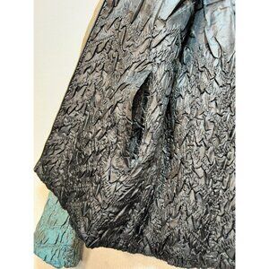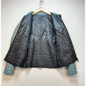 Ubu Women Crinkle Quilted Jacket Medium Metallic Teal Textured Travel Reversible