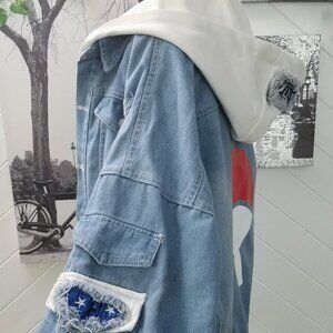 Personal favorite. Medium weight denim Naruto hoodie, oversized style, in good used condition, some wear on the cuffs and faded spots. Size is a range depending on how oversized you like it, best for women's M L XL