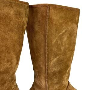 Ugg 3387 Lo Pro Button Fold Over Suede Leather Sheepskin Womens Tan Boots 6