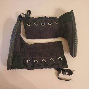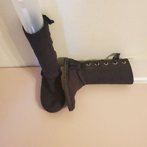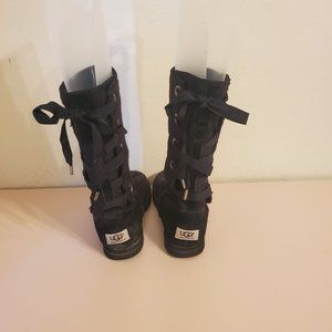 Ugg 8 Black Knit Winter Boots 1000693 Back Lace Up Sheepskin HEIRLOOM