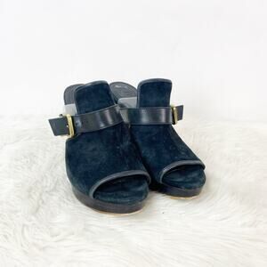 Ugg 8.5 Womens Black Suede Leather Karlee Slide Mule Stack Heels Peep Toe Buckle