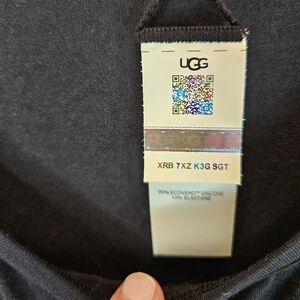 This Ugg women's tank top is a perfect addition to your wardrobe. The black color, scoop neck, and cropped style make it ideal for layering or lounging. It is made with stretch material, ensuring comfort, and is easy to wear. The top is designed for women, with a brand name of Ugg, It is a great choice for casual wear and can be paired with jeans or shorts.