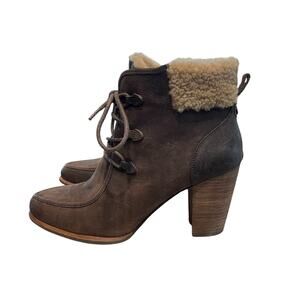 Ugg Analise Brown Leather Lace Up Heeled Ankle Boots Womens 10 AS IS