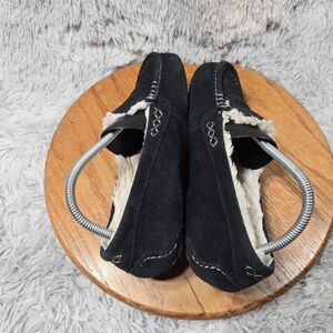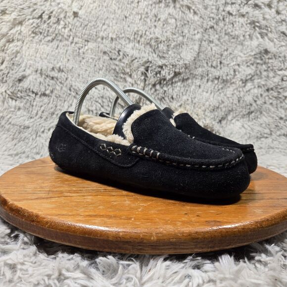 Ugg Ansley Womens Size 8 Black Suede Shearling/Sherpa Slippers House Shoes