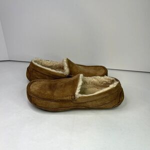 Ugg Ascot Slipper Brown Suede White Fur Slip Ons Mocassin Cozy Slippers