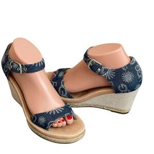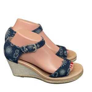 Ugg Atasha Monogram Denim Wedge Sandals size 8