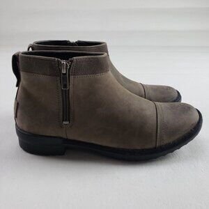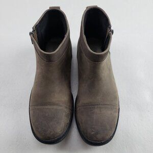 Ugg Attell Waterproof Ankle Boot Womens 7 Brown Leather Side Zip Fleece Lined
