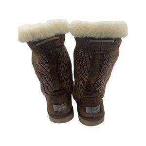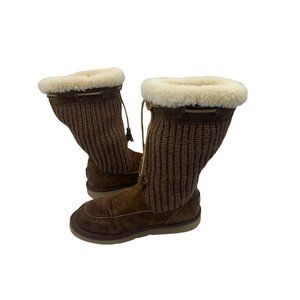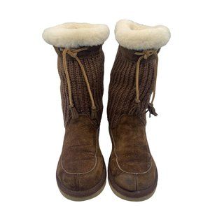 Ugg Australia 5124 Suburb Brown Size 6 Suede Crocheted Shearling Sweater Boots