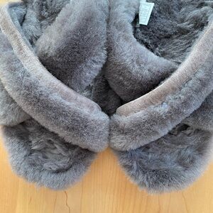 EUC. Soft sheepskin with suede trim. Rubber sole. Only worn a couple of times and decided closed toe slippers were more comfortable for me. Lots of wear and comfort left for someone else to enjoy!