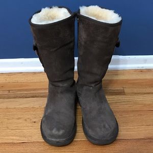 Super duper warm UGG AUSTRALIA BOOTS in chocolate brown color. SIZE us 7. Awesome condition only worn a few times. They still stand up straight and they are very warm. Comfortable. Perfect for any occasion dress up or casual.