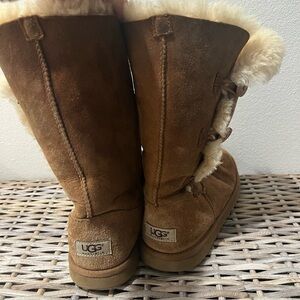 Warm UGG boots with soft sheepskin. Features classic design and durable sole. Women’s size 6, used condition, smoke free home. Thanks for looking!