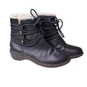 Ugg Australia Caspia black leather boots shearling lined chore outdoor work