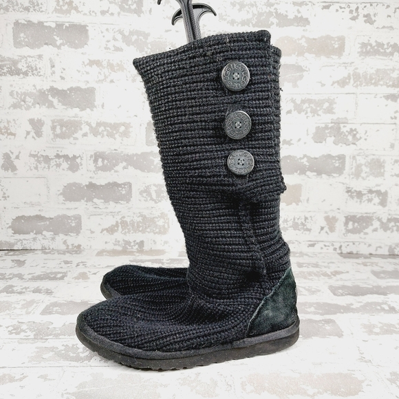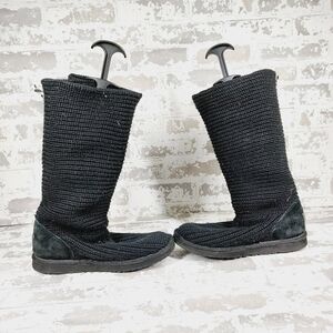 Ugg Australia Classic Cardy Grey Blue Knit Sweater Boots O32