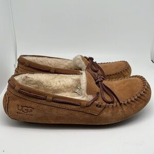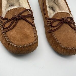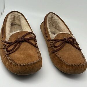 Ugg Australia Dakota Chesnut Brown Suede Moccasin Wool Fur Slippers Size 6