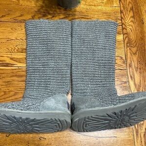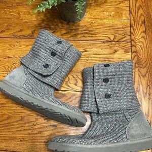 Ugg Australia Gray Silver Knit Sweater Boots Sz 6