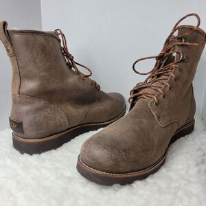 Ugg Australia Hannen Boots Mens 17 Leather Sherpa Lined Waterproof Shoes Great