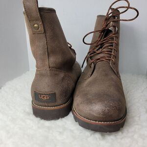 Ugg Australia Hannen Boots Mens 17 Leather Sherpa Lined Waterproof Shoes Great Condition See Pictures For More Details.