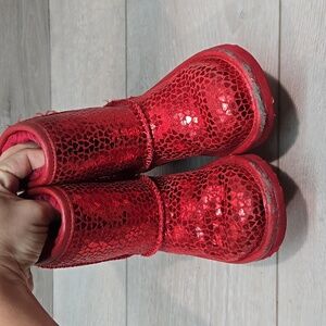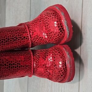 Ugg Australia Kids Girl Red Sequin Hearts Leather Sheepskin Boots Shoes Sz 10 Td