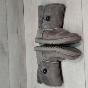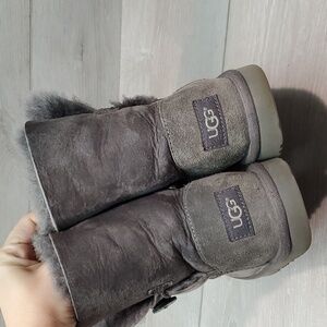Ugg Australia Kids Girls Bailey Button Leather Sheepskin Boots shoes sz 3
