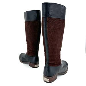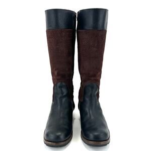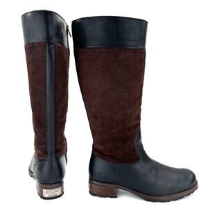 Ugg Australia Knee High Winter Boots Sz 11 Black Leather Brown Suede Wool Lining