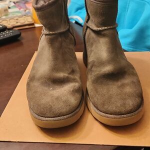 Ugg Australia Olive Green Wedge Heel Suede Ankle Boots w/ Gray Shearling Size 9