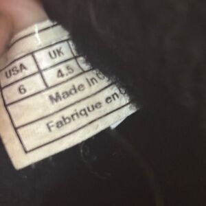 These are preowned Suede and wool boots by Ugg. They feature a shearling shaft and sided toes on the upper. They are fully lined in shearling. The boots are black. They show fading and some spots at the toes as well as typical Ugg creasing.