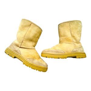 Ugg Australia Ultra Short Suede Sherpa Sheepskin Upper Wool Lining Boots Size 7