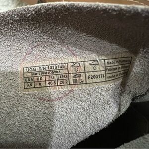 Ugg Australia Women Elora Sahara Gray Suede Ankle Boots Booties Sz 9.5 1019148, Preowned condition, light wear on heels, soles, scuffing on leather throughout boots