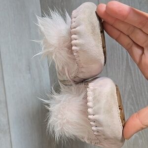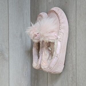 Ugg Australia Women Pink Pom Pom Fuzzy Moccasin Slippers Clog Shoes Sz 7