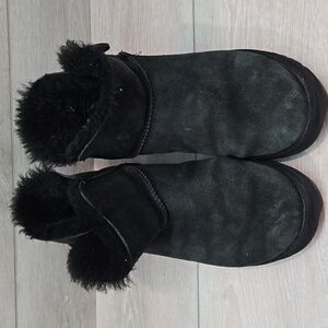 Ugg Australia Women's 3352 Button Black Suede Sheepskin Ankle Boots Shoes Sz 9