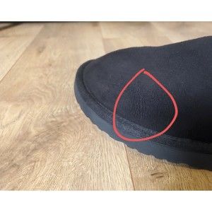 The uggs are in excellent condition! The suede is so soft and smooth. They do have a small crease in the suede but it is very slight. They also are missing a chunk of the sheepskin lining on one heel. There is no hole.
