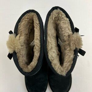 Ugg Australia Womens Koolaburra Comfort Boots Black Suede Bow Mid Calf Pull On 6
