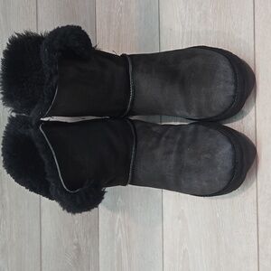 Stay cozy and stylish with these women's black shearling boots. Perfect for cold weather, these boots offer comfort and warmth.