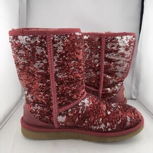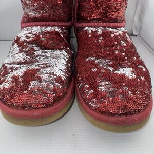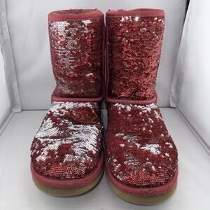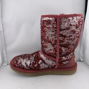 Ugg Australia Women's Red And Silver Sequin Short Boot SN 1003121 US 7