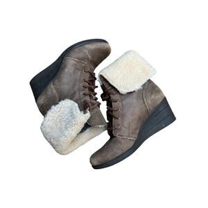 Ugg Australia Womens Zea Brown Leather Waterproof Wedge Boots Size 8