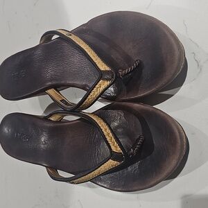 Ugg “Azure” black and tan wedge flip flop sandals 6.5