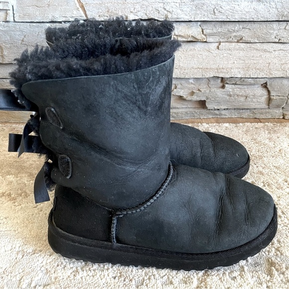 Ugg Bailey Bow II Black Short Boots Sheepskin Lined Suede Leather: 4