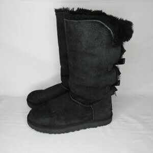 Ugg Bailey Bow II Tall Black Suede Leather Boot Women's 9