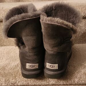 Ugg "Bailey" Button II Gray Short Suede Sheepskin Boots w/ Shearling Size 9