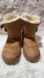 Please see pictures and video for color in different lighting and condition. Interrior sole has some fur that has come off. Visible use with flaws. Priced as such.