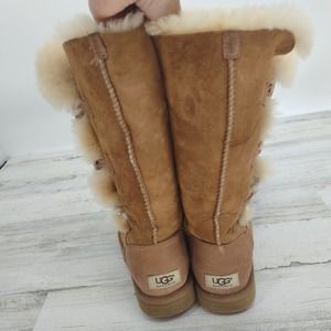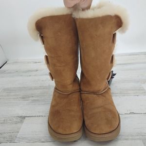 Ugg Bailey Button Three Cognac Suede Leather Sherpa Lined Knee High Winter Boots