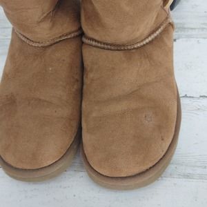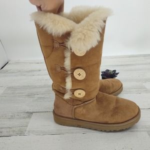 Ugg Bailey Button Three Cognac Suede Leather Sherpa Lined Knee High Size 7