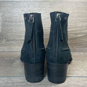 Ugg Bandara Black Suede Women’s Sz 7 Rear Zip Chunky Heel Pull On Ankle Boots