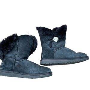 Ugg Black Ankle Boots Mini Bailey Button Bling with Fur Lining Size: 6