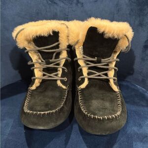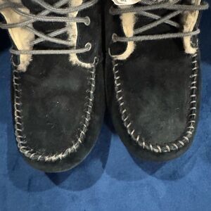Ugg Black Chickaree Shearling Lace Up Boots Sz 8. Waterproof black suede with shearling lining. Excellent condition.