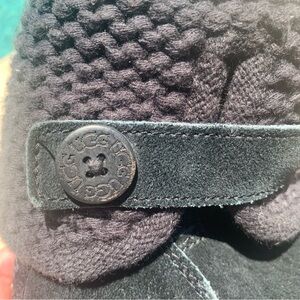 Ugg Black Suede Ankle Boots with Knit Cuffs & Button Sz 4 Kids