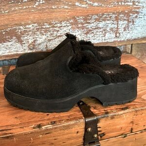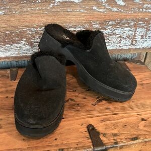 Ugg Black Suede Mules with Sherpa Lining Size 9 Y2K