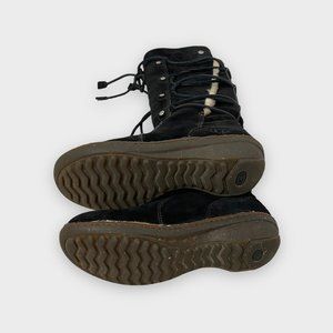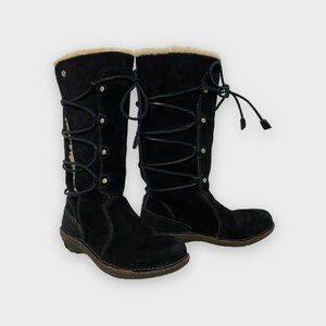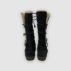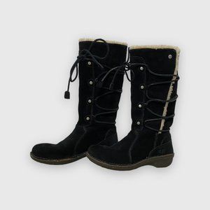 Ugg Black Suede Sheepskin Lace Up Snow boots Tall, Size 7 Surfcat S/N 5158