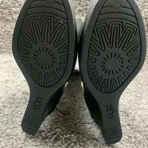 Ugg Black leather knee high shearling lined laceup wedge boot 1005665 sz: 9. Smoke and pet free home. 0634
